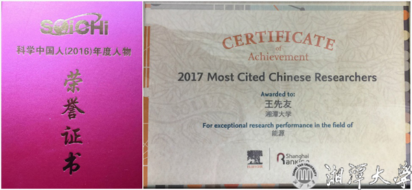 Professor Wang Xianyou, the team leader, is currently the Dean of the Graduate School of Xiangtan University. He is the Hunan Province second grade professors and doctoral supervisors. He is the evaluation expert for the national key research and development projects, the international cooperation project evaluation of the Ministry of Science and Technology, and enjoying special allowances from the State Council. He was honored as the Scientific Chinese (2016) person of the year, the first Hunan advanced science and technology worker, the first leading talent of science and technology in Xiangtan City, and the leading talent of science and technology innovation in Changsha city. The h-index of his published article was as high as 43. Since the Elsevier Publishing Group launched the highly cited Chinese scholar in 2014, he has been continuous awarded a highly cited Chinese scholar in the energy field.