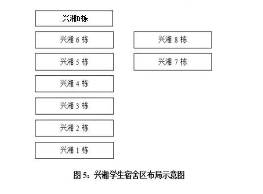 興湘學(xué)生宿舍位于興湘學(xué)院院內(nèi),宿舍區(qū)域有高標(biāo)準(zhǔn)的學(xué)生食堂,宿舍位于二環(huán)線附近,毗鄰公交車站,交通方便。目前興湘學(xué)生宿舍共計(jì)9棟,建筑面積33025.79平方米,寢室830間。
